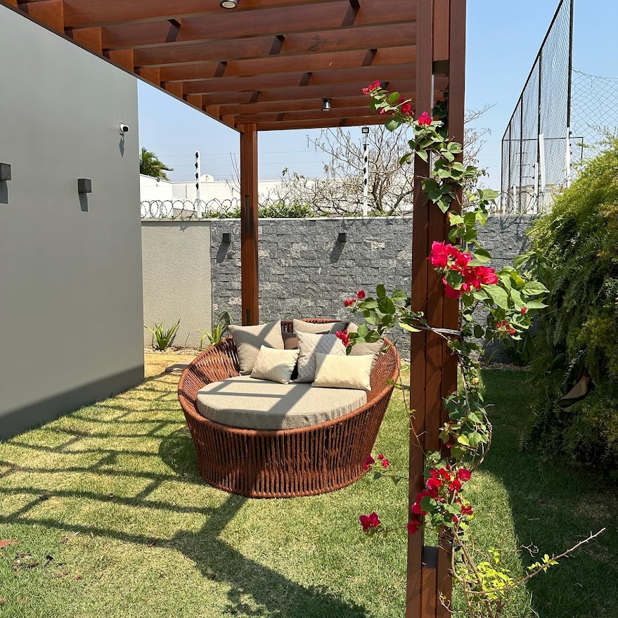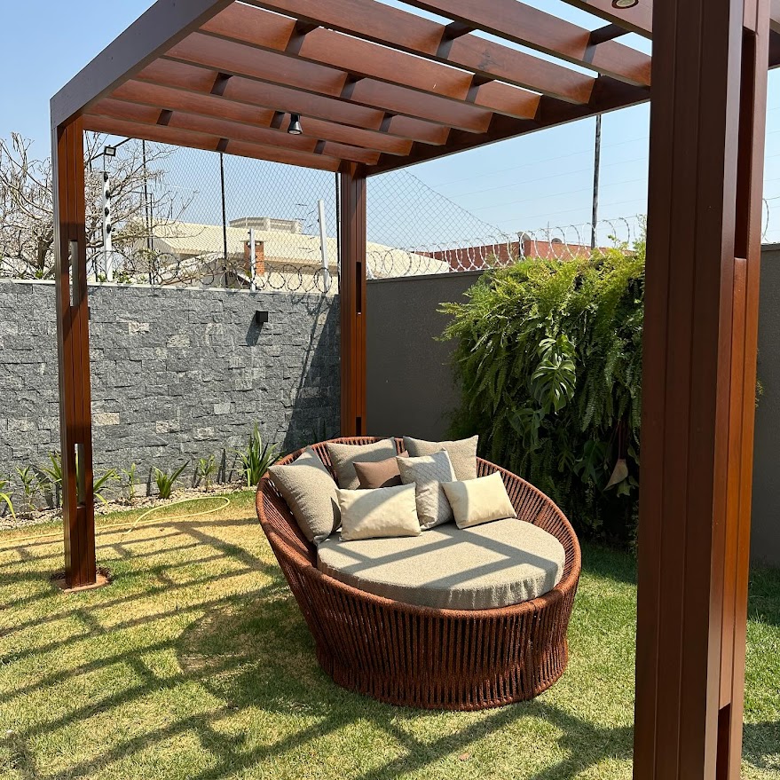 Acompanha: Estofados (assento e 4 almofadas decorativas)
