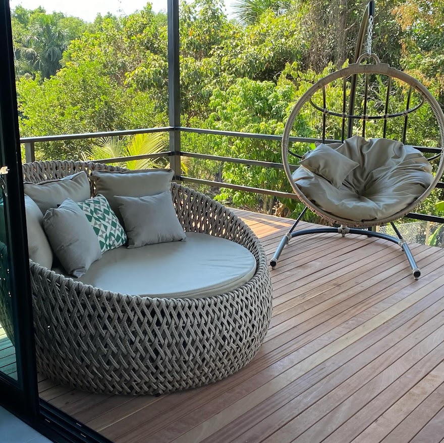Acompanha: Estofados (assento e 4 almofadas decorativas)